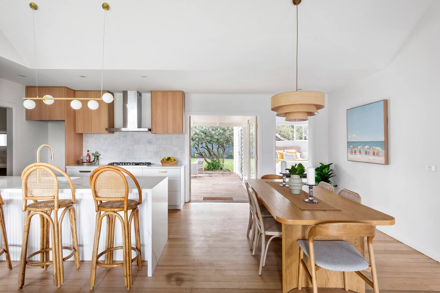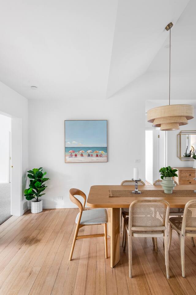 Beautifully renovated quintessential beach house, an 5 minute flat walk to McCrae Beach, Lighthouse, local cafes and restaurants. This light-filled home blends beachside charm with modern comfort and sleeps 6 guests across three queen bedrooms (all with block out blinds) + room to bring your own portable-cot. Open-plan living, fully equiped kitchen, alfresco deck with BBQ and landscaped gardens. Walk to cafés, restaurants, McCrae Plaza and Peninsula attractions — the perfect Peninsula getaway.